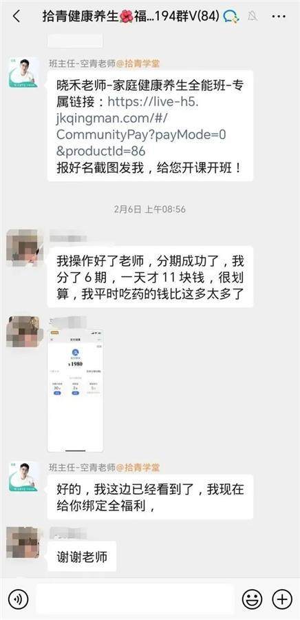 一开始是拿免费课程引流,不要钱只要点赞,然后就是诱导“好骗”的用户加群,掩盖牟利企图,避开平台监管,再后来就是“熟悉的配方”——兜售昂贵的养生课程和保健品,一旦看谁没下单,还专门私信“攻略”,大打情感牌,一整套“攻心之术”娴熟又流畅,很多老年人猝不及防,不知不觉被掏空了钱包。