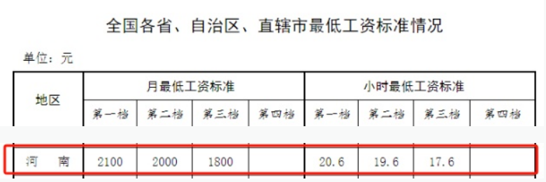 第一档2100元!河南最低工资标准公布