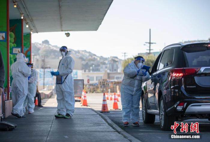 资料图:设立在美国加州旧金山的一处新冠病毒检测站,向市民提供检测服务。
