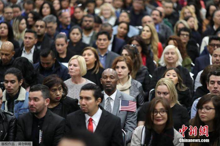 资料图:当地时间2018年12月19日,美国洛杉矶,来自100多个国家的6000多名移民参加入籍仪式。
