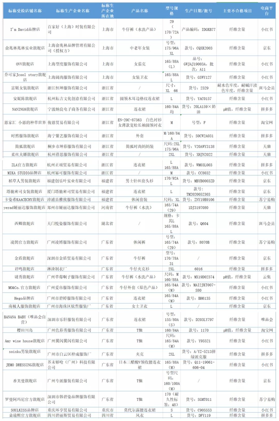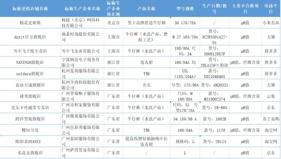 据悉,此次共抽查了14个省(市)301家企业生产的315批次休闲服装产品。不合格项目涉及纤维含量、pH值、耐水色牢度、耐碱汗渍色牢度。