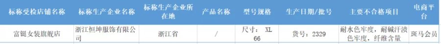 色牢度差的产品在使用过程中容易产生褪色或沾污其他服装,影响使用。本次抽检中1批次产品耐水色牢度,耐碱汗渍色牢度,纤维含量项目均不合格。