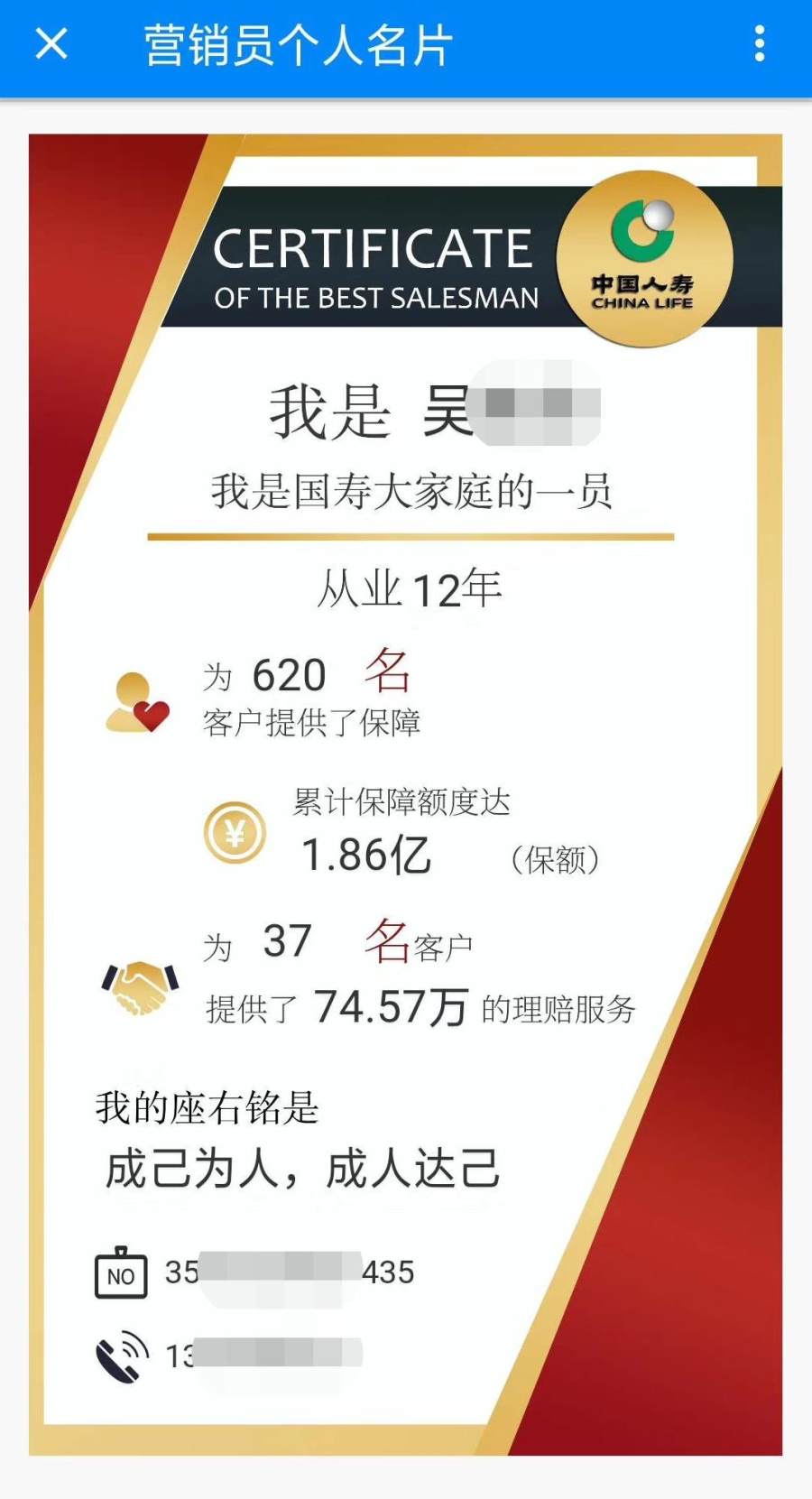 2月24日,正观新闻记者从吴女士处了解到,她供职于中国人寿福建分公司漳州支公司收展一部,是从业14年的营销员。2020年11月,因没有配合部门自购主险,于12月28日强制从营销员系统中剔除,“漳州收展一部现任经理辛某聪为了完成上面大的有效人力考核,要求员工配合他做自购单,我没配合,强制和我解约了。”说起自己的经历,吴女士十分委屈。