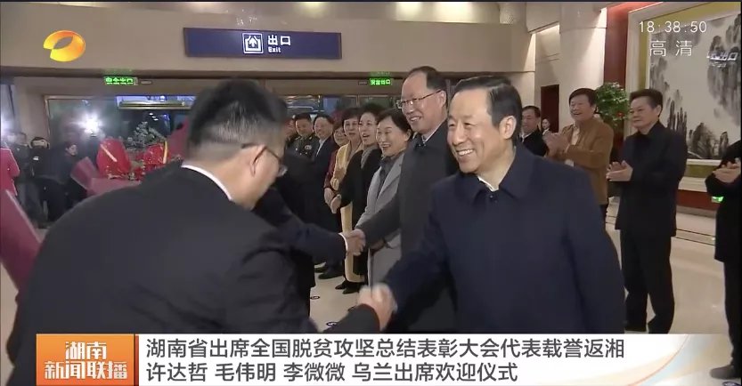 在2月25日,许达哲、毛伟明和湖南省出席全国脱贫攻坚总结表彰大会的全体代表同机抵达湖南。