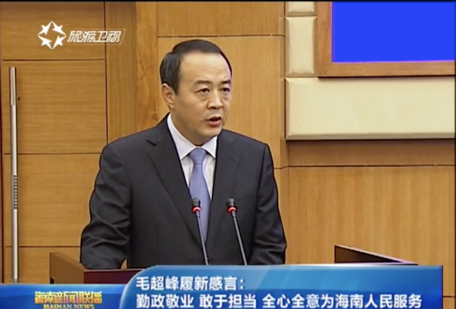 毛超峰新职务首次披露,此前任海南省委常委、副省长