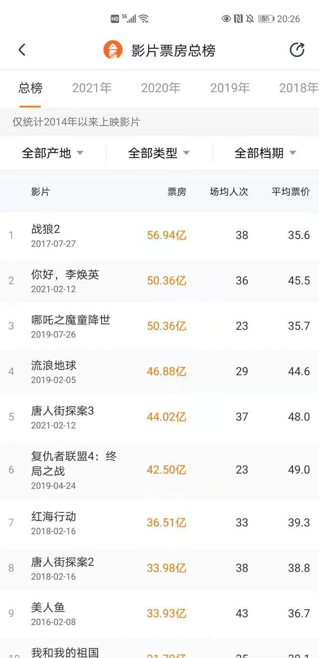 《你好,李焕英》总票房超《哪吒》,成中国影史亚军