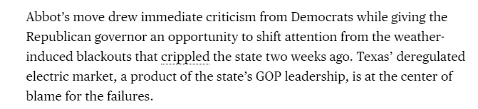 △彭博社的一篇文章不无讽刺地指出,这一决定还让阿博特有机会把舆论从批评此前极端天气引发的得州大规模停电一事上引开(资料图)