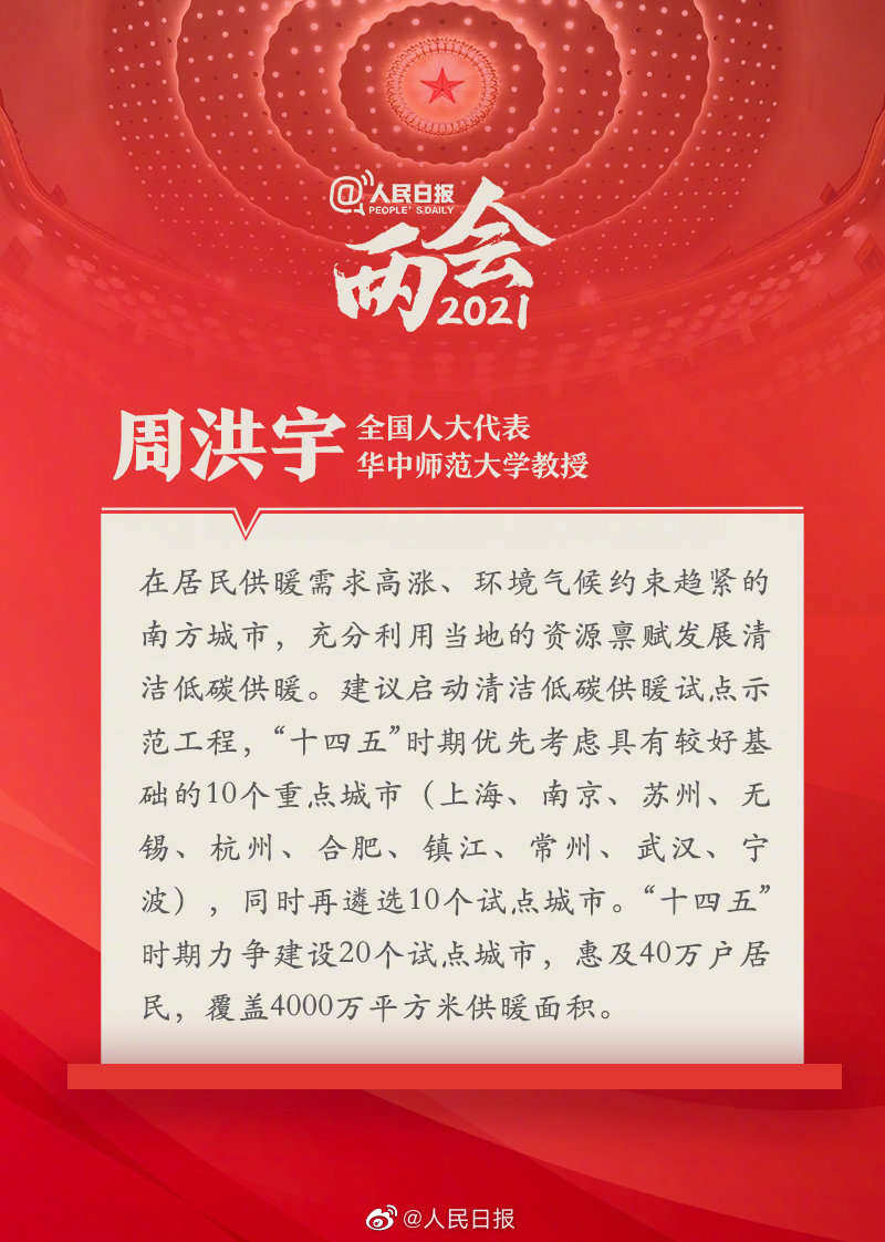 (原标题《周洪宇代表:建议南方试点清洁能源供暖》)