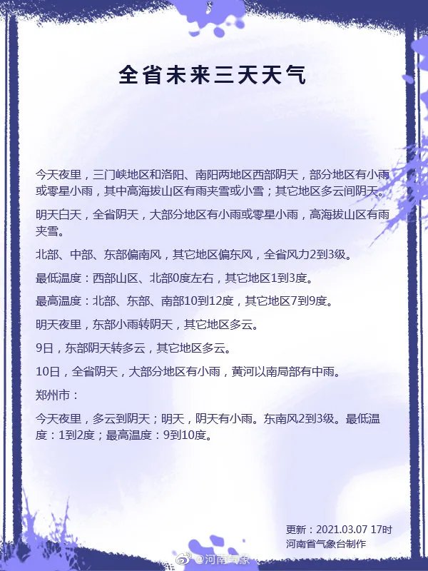 河南省大部地区最高气温明显回升,暖意回归!