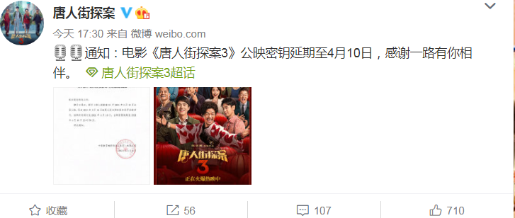 (原标题《继李焕英后,唐探3宣布将延长上映至4月10日》)