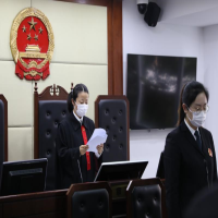 图说:法官向原告代理律师和被告宣读一审判决结果。杨浦法院供图
