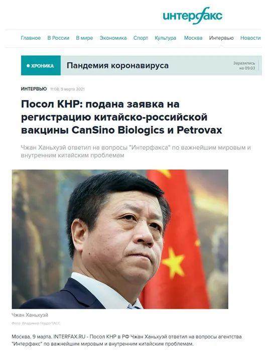 2021年3月9日,中国驻俄罗斯大使张汉晖接受俄罗斯国际文传电讯社书面专访,全文如下: