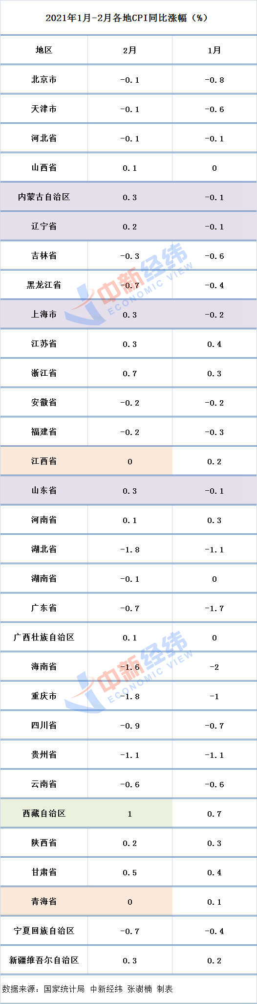 各地2月CPI出炉:4省份“转正”,这两省降最猛