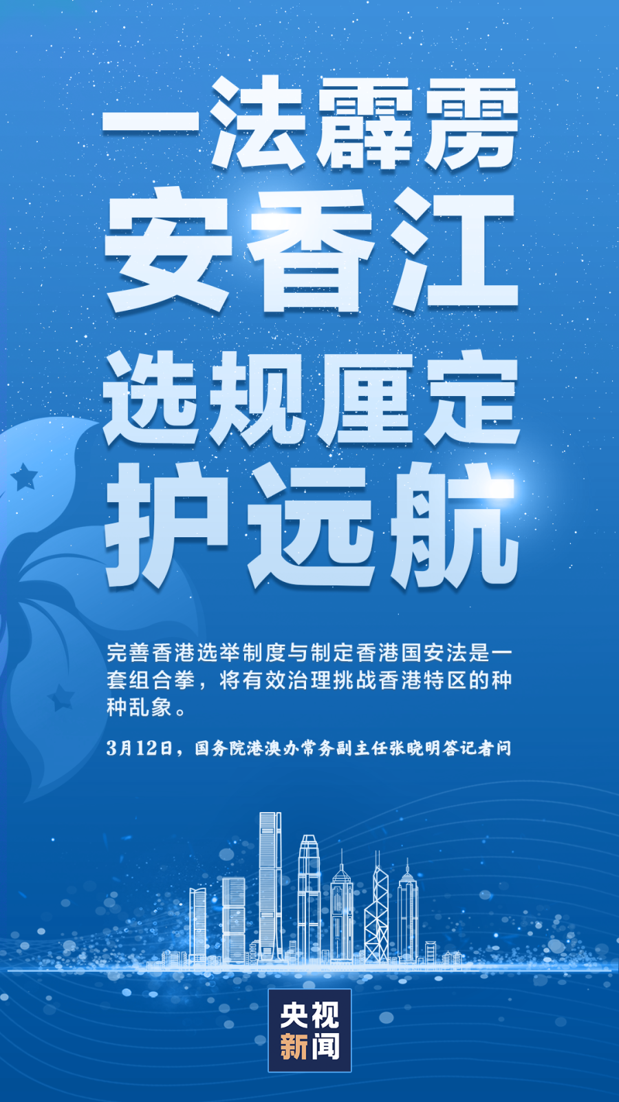 国务院港澳办常务副主任张晓明:邓小平同志曾经有过经典论述,爱国者的标准包括:尊重自己民族;诚心诚意拥护国家恢复行使对香港的主权;不损害香港的繁荣和稳定。