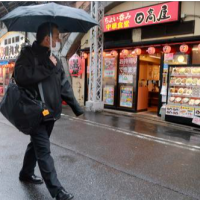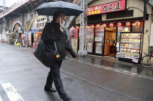 3月8日,一名男子撑伞从日本东京街头的餐馆旁经过 新华社发