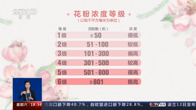 除此之外,专家还对花粉浓度等级进行了划分,同样可供花粉过敏人士参考。