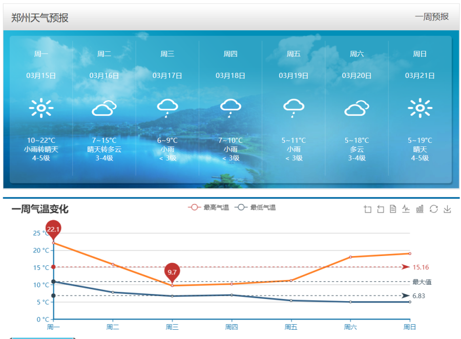 像省会郑州,最高气温14日15.8℃,15日22℃,而17日就降到了10℃左右,气温起伏十分明显。