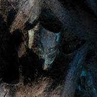 三星堆遗址考古发掘现场3号“祭祀坑”拍摄的青铜面具