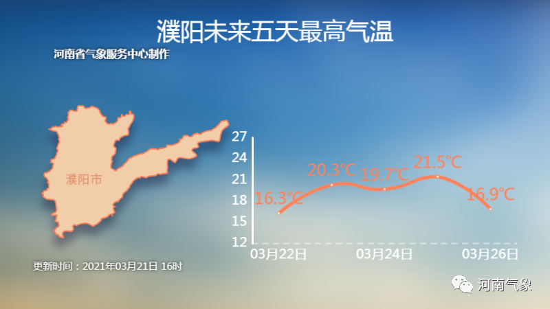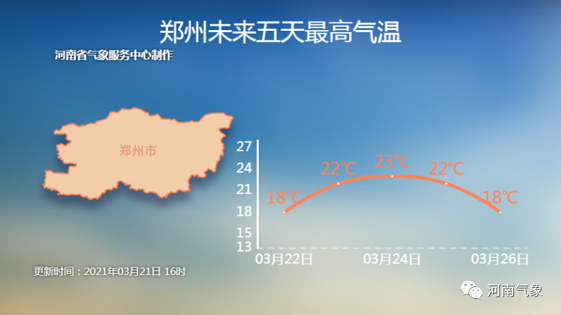 以郑州最高气温为例 ,20日~16℃,21日~14℃。