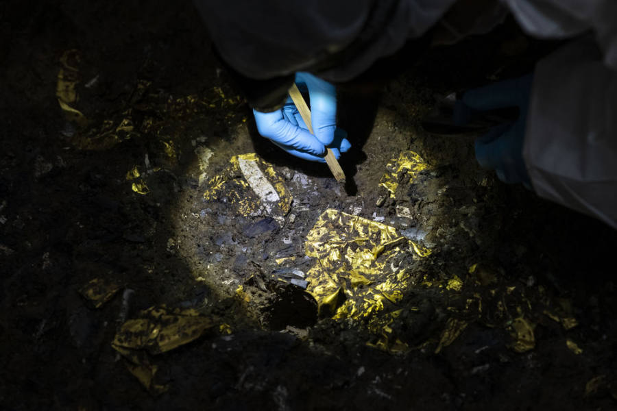 5号“祭祀坑”发现的金器。(新华社记者沈伯韩摄)