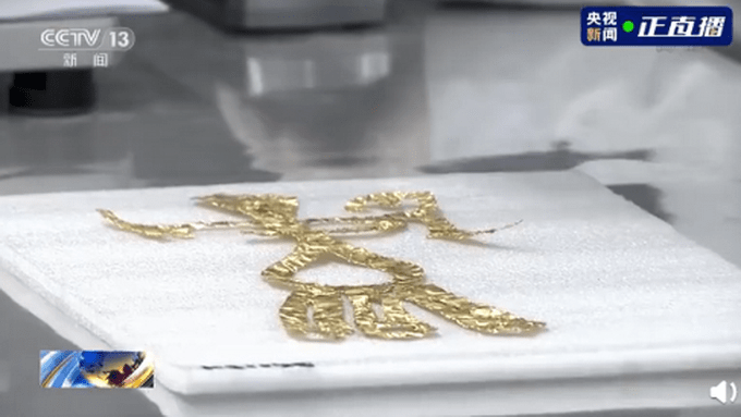 考古人员介绍,起初从坑里提取出来时,以为只是个长条形的金饰,后来随着修复进行,形状逐渐舒展开来,有翅膀,尾巴像凤凰,真的惊艳!这件金饰非常薄,约0.12毫米。