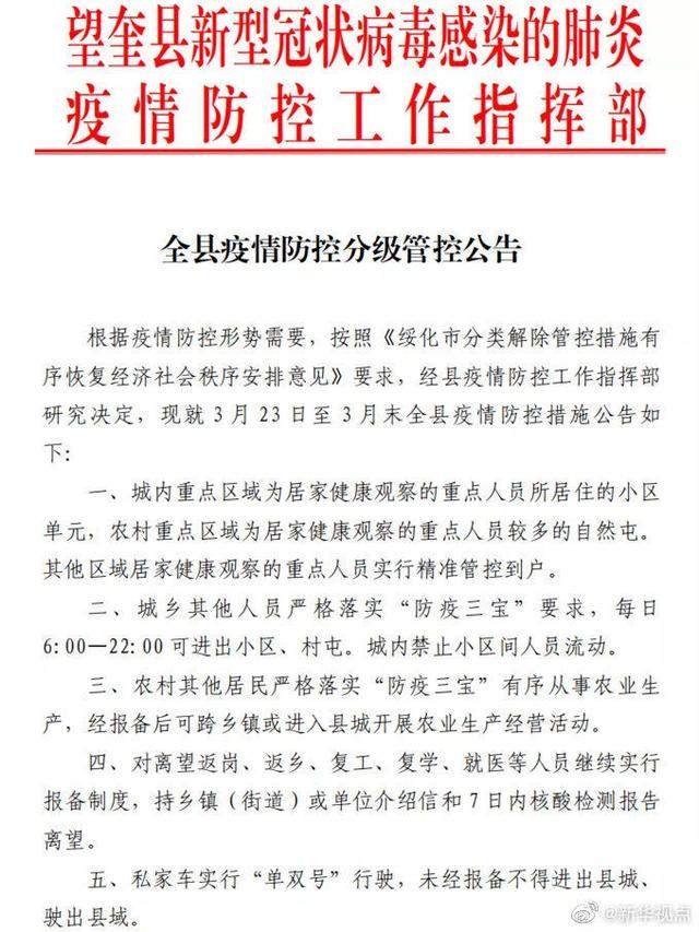 3月22日,黑龙江省望奎县新冠肺炎疫情防控工作指挥部发布,内容大致就是要求全县仍施行“加码”式严管,比如私家车“单双号”行驶,未经报备不得进出县城、驶出县域等。这不由得让群众惊出一身冷汗——“这是又有情况吗?”“整啥呢,又有病例了吗?”