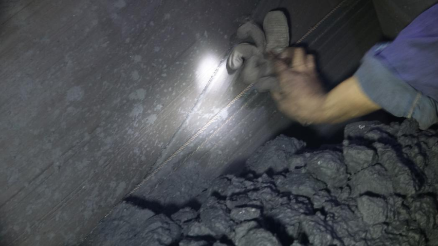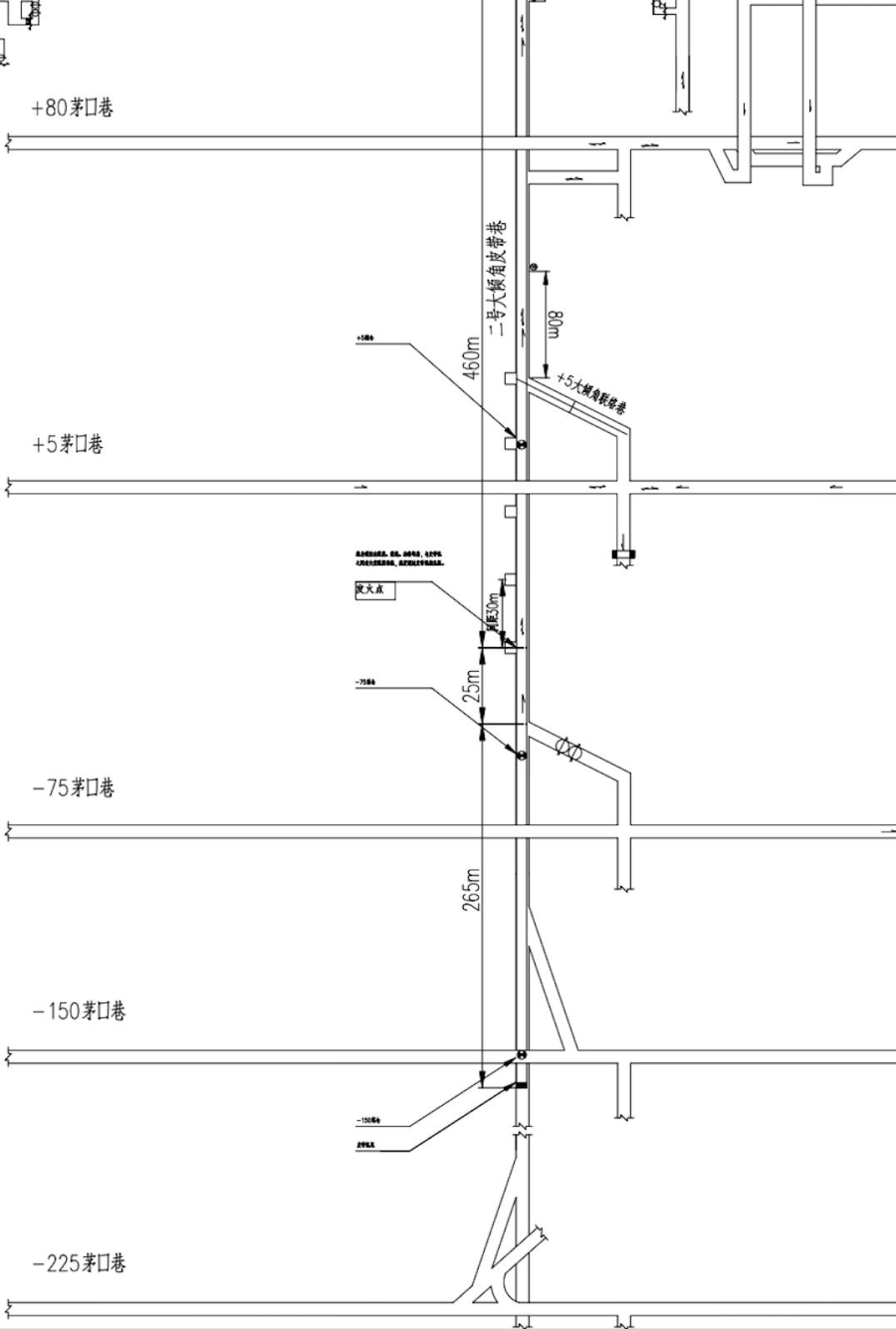 7.其他情况。二号大倾角胶带巷–75m—–225m段未见燃烧痕迹,仅见底板部分浮煤浮矸,机尾堆积下滑的未着火胶带磨损痕迹明显,胶带巷浮煤浮矸堆积,–75—+5m段尤其突出;–225m机尾段未见燃烧痕迹,仅见底板部分浮煤浮矸;胶带因断裂下滑至机尾,导致机尾座下滑10余m;现场可见胶带磨损痕迹。