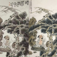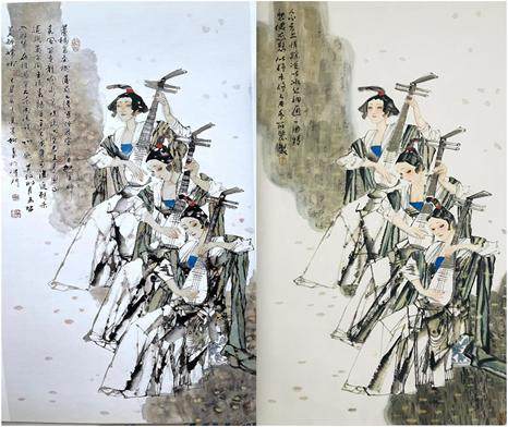 马寒松于己丑年(2009年)所作《李白诗韵之三》(左)与王筱丽于乙未年(2015)年所作画作(右)