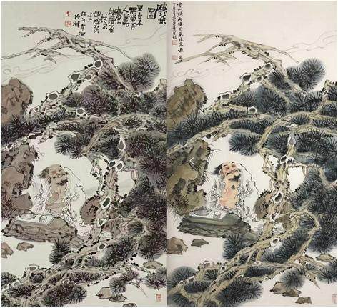 马寒松于甲午年(2014年)所作《喫茶》(左)与王筱丽于丁酉年(2017年)所作画作(右)