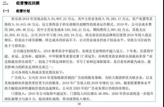 广州足球俱乐部2019年财报。