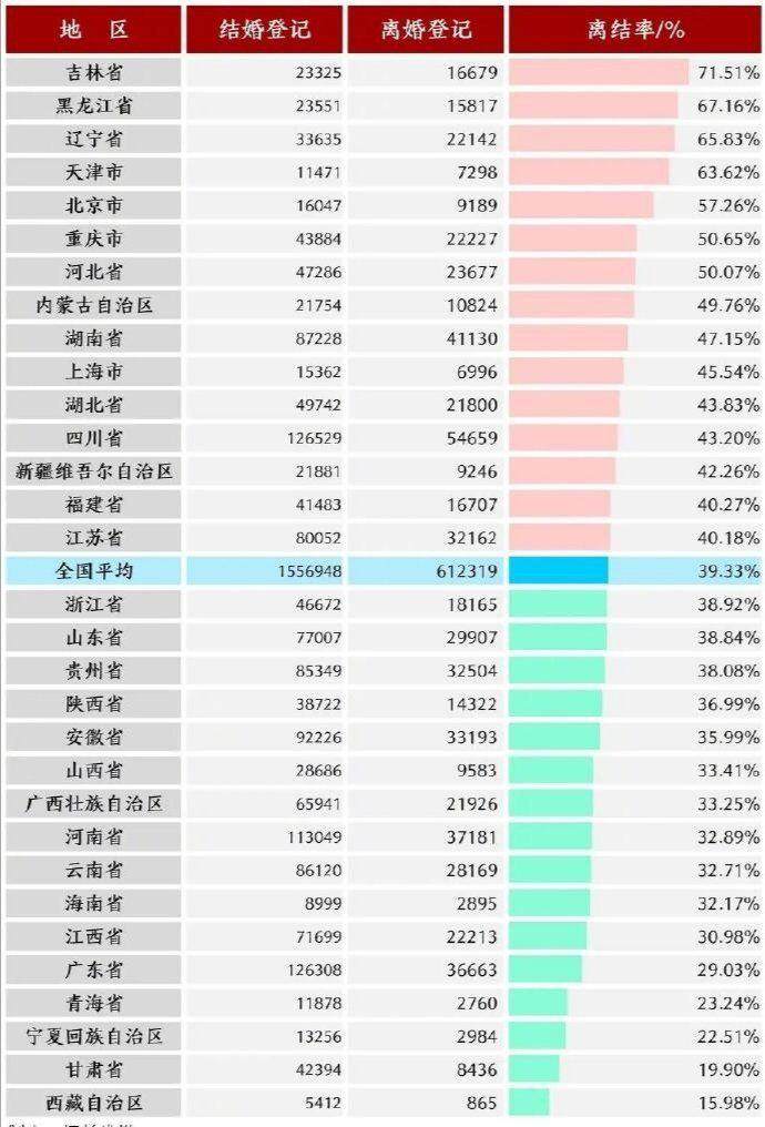 在潘绥铭教授四次调查结果中显示:2000年,男性出轨率是11.8%,到了2015年变成了34.8%,翻了3番;女性出轨率达到13.3%,同样翻了3番。根据民政局提供的资料显示:2020年全国平均离结率为39.33%,相当于每三对新人结婚,就有一对离婚。以武汉为例:2019年,武汉登记结婚217147对,登记离婚112775对(根据武汉民政局官网公布的2019年1-4季度数据统计得出,仅供参考),结婚率为19.36‰,而离婚率为10.06‰(仅供参考),均高于湖北省水平,也高于全国水平。