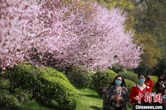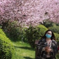 资料图:市民“带着口罩”赏春光。 孟德龙 摄