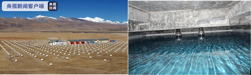 △我国西藏羊八井ASγ实验(左图:ASγ表面阵列;右图:地下水切伦科夫探测器)