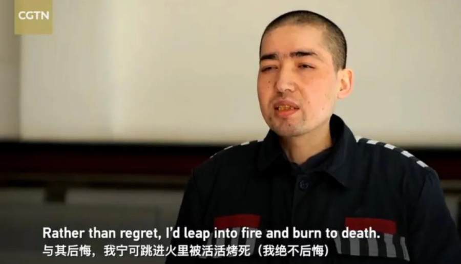 深受极端思想蛊惑的阿卜杜力(图源:CGTN)