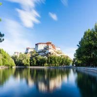西藏拉萨,布达拉宫背面倒影景色令人陶醉。视觉中国 图
