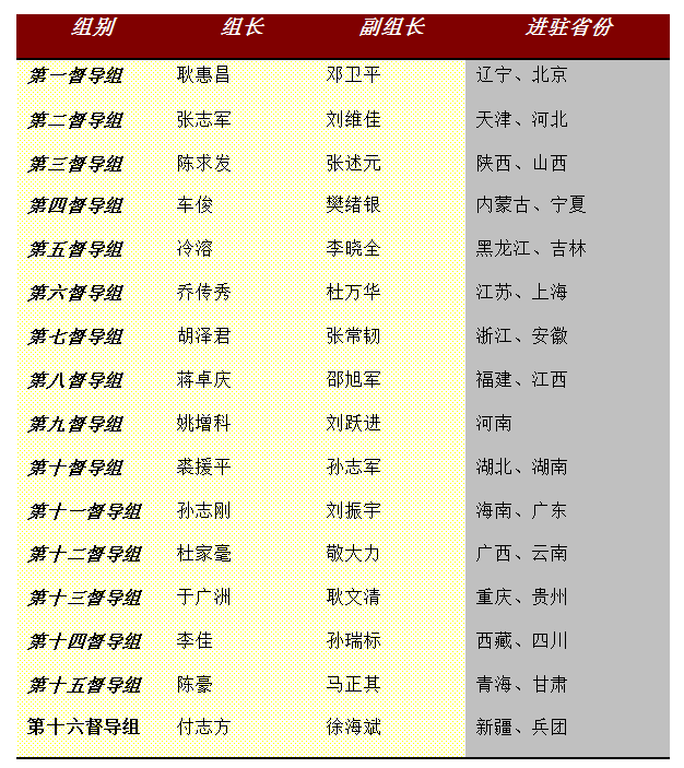 16位中央督导组长,全部就位