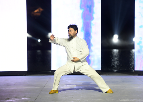 来自河南温县的人类非物质文化遗产代表作名录太极拳市级非遗传承人张保忠老师倾情加盟“老家河南黄河之礼·宋廷梦乐”华服秀,以太极拳演绎拉开第三篇章幻的序章,太极分黑白蕴含哲理万千,模特配饰如星芒极具张力,是黄河文明在五千年流淌中不断变幻却又根源同宗的统一。