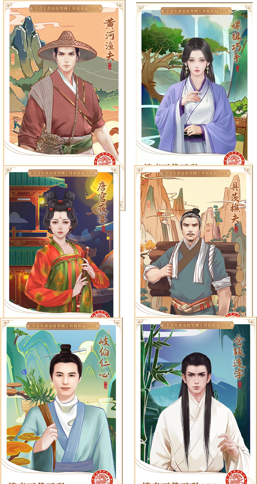 平台提供了六位古代大咖,以及六个革命精神换装场景,帅哥美女云集!有仓颉、嫘祖、唐宫小姐姐等古代人物、还有二七精神、焦裕禄精神,红旗渠精神等革命精神场景。