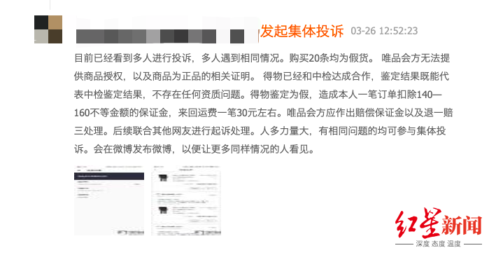 根据得物与优奢易拍的鉴定结果,王维与刘冬等人对唯品会提出了退一赔三和道歉的诉求。