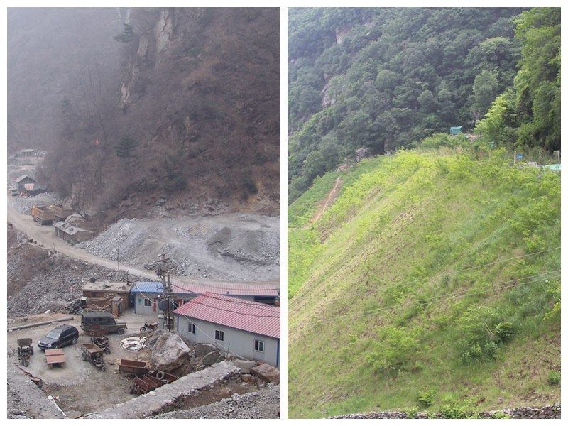 文峪金矿1515坑口整治前(左图)和整治后(右图)对比图。