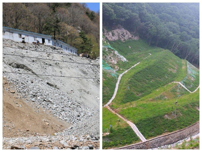 老鸦岔1770坑口整治前(左图)和整治后(右图)对比图。