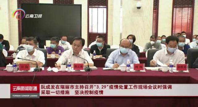 3月31日,在瑞丽市,云南省委书记阮成发主持召开“3·29”疫情处置工作现场会议。