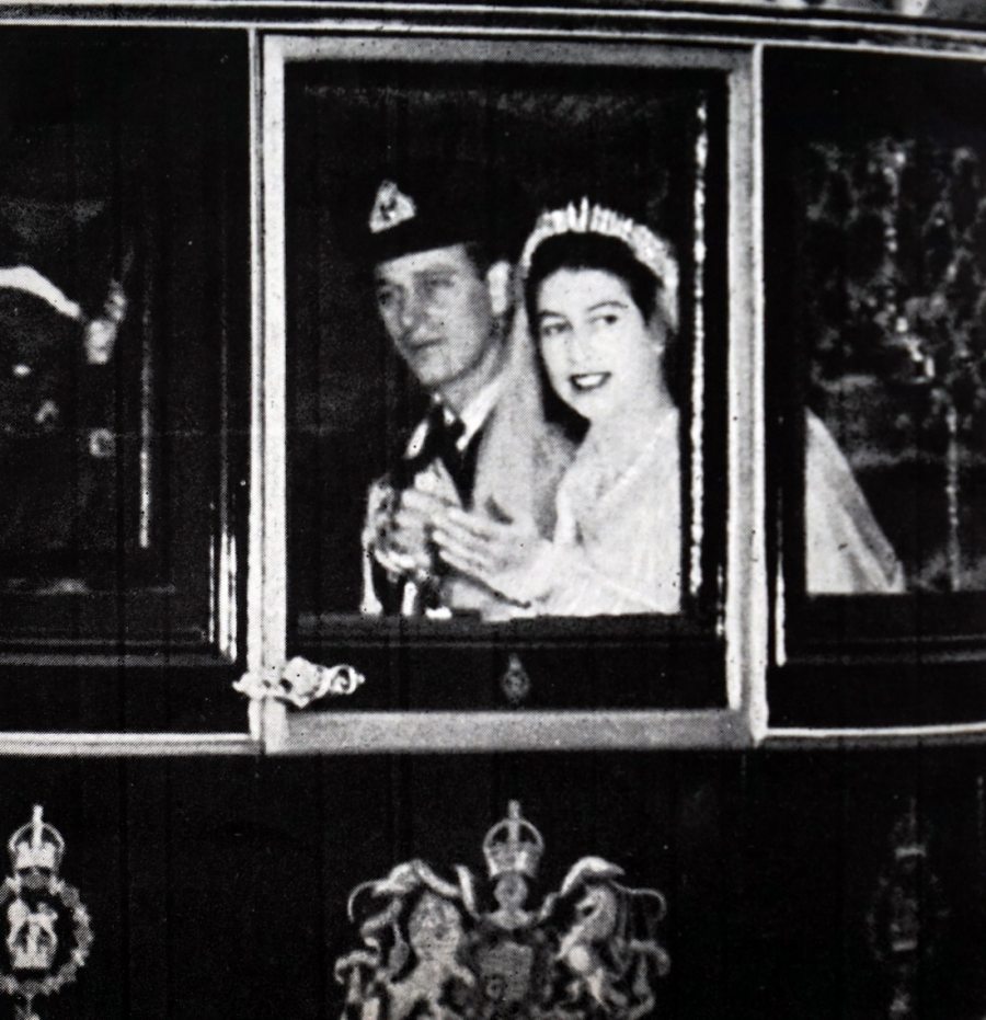 当地时间1947年11月20日,婚礼当日,马车上的新婚夫妇。
