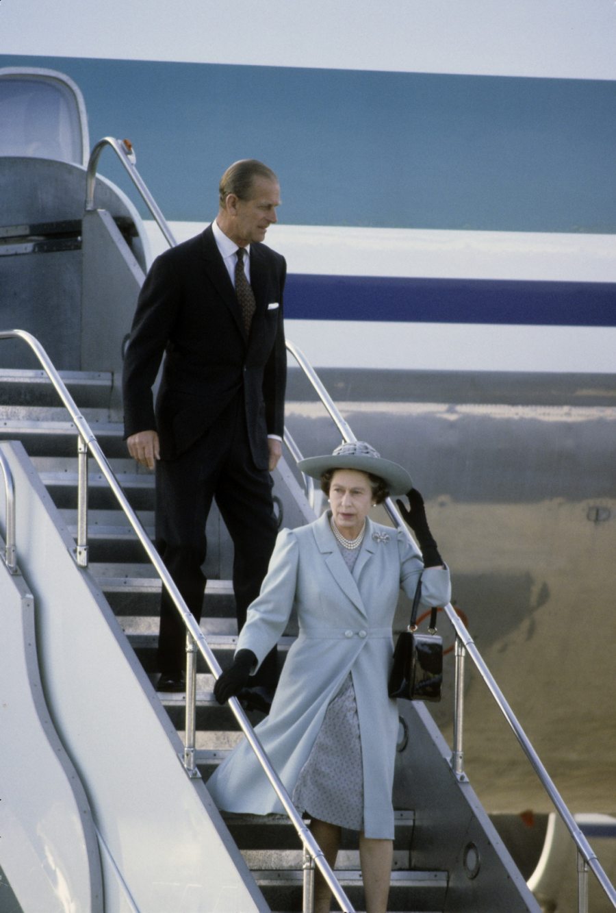 当地时间1981年10月,英国女王伊丽莎白二世和菲利普亲王抵达新西兰惠灵顿访问。