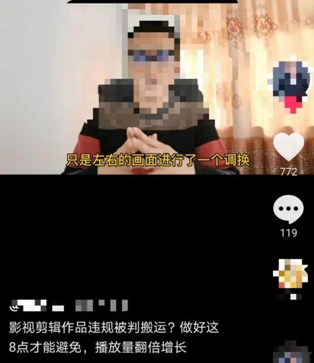 同时,由于门槛低、“性价比高”,这类账号还吸引了一个又一个模仿者,一些账号的名字甚至还写着“收徒”,他们不仅通过售卖“搬运教程”来牟利,教买家通过裁剪、抽帧、调速、水平翻转、调饱和度等方式规避侵权的风险,还开高价课来传授影视剪辑号变现的方法。