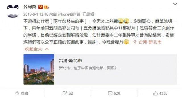 2019年,谷阿莫到法院出庭调解会,谷阿莫当时称,目前不便对案件发表任何意见,希望对方提供具体赔偿方案才有讨论空间。他估计整个事件还要两三年才会有结果。