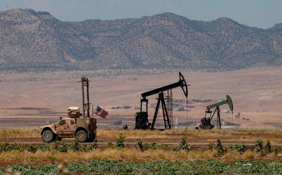 △2020年8月4日,叙利亚东北部哈塞克省,美军士兵开车经过当地乡村的一个油田。