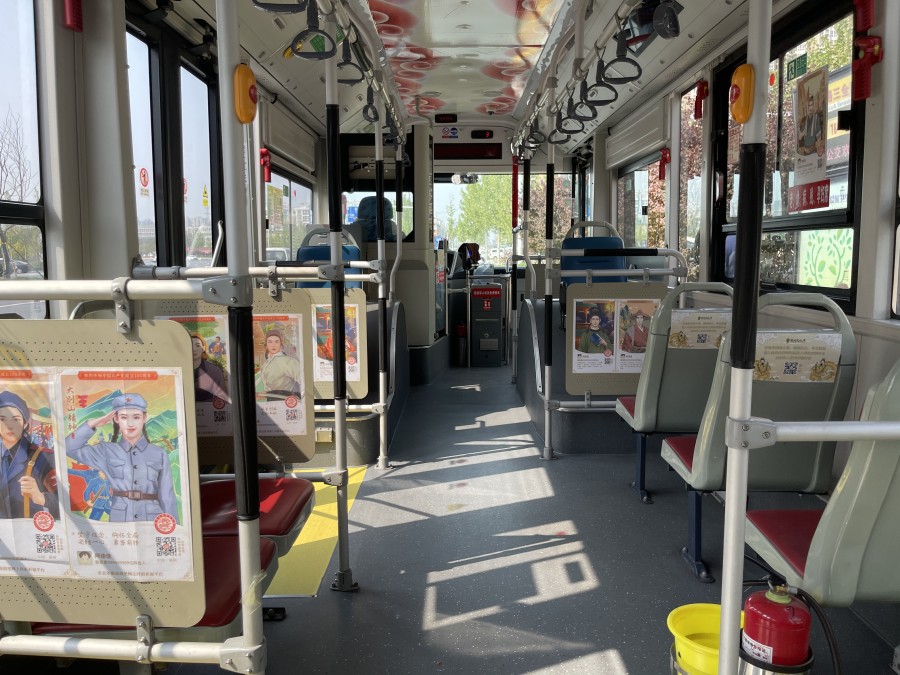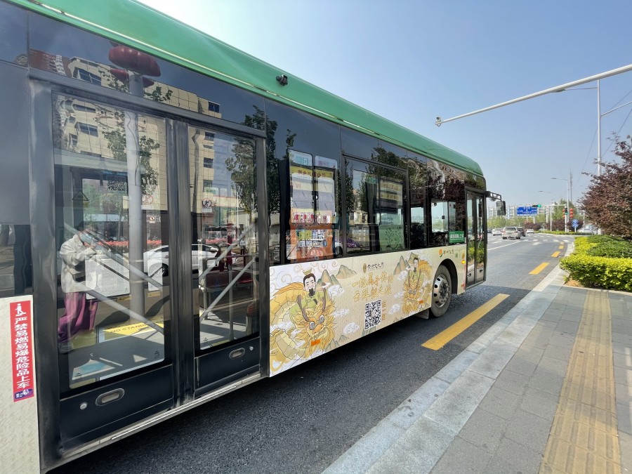 “轩辕号”22路主题专车从省体育中心发车,终点站到达紫荆山金水路,途径28个站点。车长黄菲说:“‘轩辕号’是由我们线路班组共同张贴完成的,为了营造拜祖氛围,让郑州市民深入了解今年拜祖大典的新‘玩’法,我们把网上拜祖‘搬’进车厢,大家可以通过车厢中的二维码进入平台,即可参与网上拜祖。”