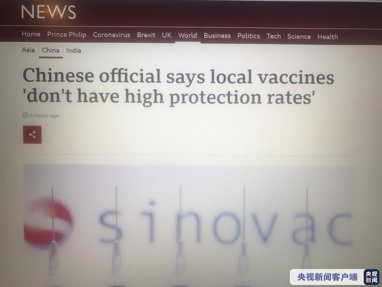 该报道的题目是“中国官员称国产疫苗有效率不高”