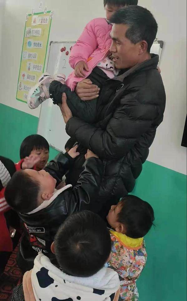 面对撤点并校,他为了保留学校,又创办了幼儿园;没有钱,他自己垫钱,垫工资;老师少,他自己教三门课。然后,每天买菜、上课、陪孩子。